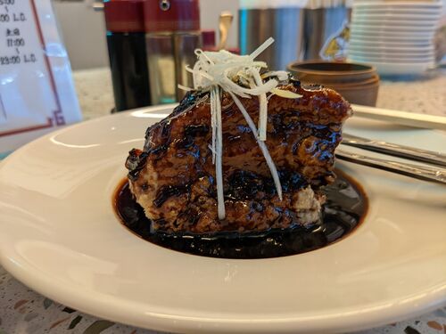 錦糸町「フーフー飯店」の骨なしスペアリブの黒酢酢豚定食1,080円JR高架下のカジュアルなラーメン店かと思いきや、ホテルレストランでナイフとフォークで食べるような、大きな塊りの酢豚がいただけるなんて。サクっとした衣、ホロリと軟らかな赤身に、黒酢の…