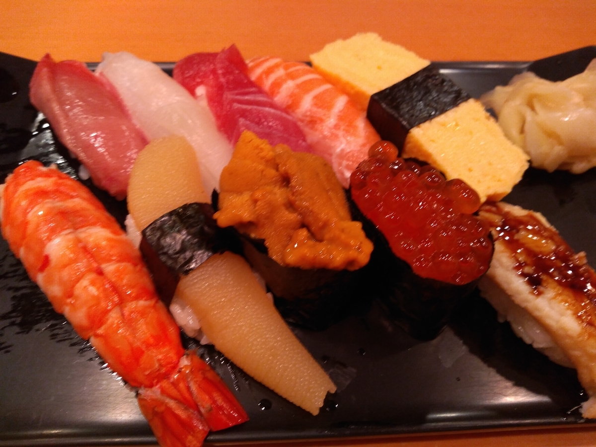 id:codingalone 氏のブコメで「おっ、寿司いいな」という気分になったので食べました。あまり時間が無かったので握りセットです。スシローが近所に無かったので少し予算オーバーですが美味かったのでよしとしましょう。月曜に贅沢しちゃうと週末まで節約生活です。頑張っていくぞ〜。