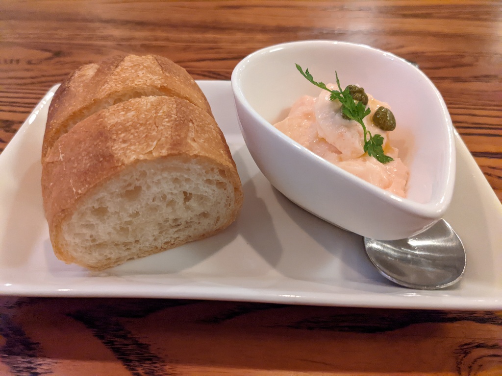 アミューズはタラモ&バゲットです。バゲットはおかわり可です。ちなみにこの日はコースにしました。コース予約は当日の11時までが原則(知らなかった)のため今回はご厚意で対応してくださったようです。次回からは早めに予約します。