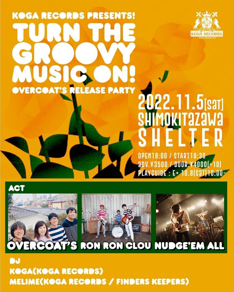 恥ずかしながらOvercoat’sのことを知らなくて「おっ、ロンロンとナッヂ見に行くか」という感じでチケットを買ったライブに行ってきました。まずはナッヂから。何度も見てるのでもはやいつも通りであることが最高でこれぞ「KOGAクラシック」ということでいつまで続くのかわからないけどずっと続けてほしいですね。「クラシックワールド」お待ちしています。そういやいまだに曲と曲名が一致しないのが多いんだけどメジャーキーで冒頭ミディアムで始まってすぐにテンポが1.3倍くらいになって転調を繰り返すアレが聴けたので最高オブ最高でした。そしてロンロンクルー。こちらも何度も見てるのでこちらもいつも通り。グーグルカレンダーを検索したら2018年6月にここSHELTERでロンロンとナッヂを見てました。しかし新井氏は全然老けないな。荒木飛呂彦か新井仁かというくらい老けない。何食ったらああなるんだ。そしてレコ発の主役Overcoat’sです。2019年に12年ぶりに再結成されたのだとか。KOGAクラシックに馴染みのある者にとってはとても聴き心地の良いサウンドで女性Voのギターポップとか大好物じゃん。活動のペースがどんなもんかわからんけどまたライブ見たいな。