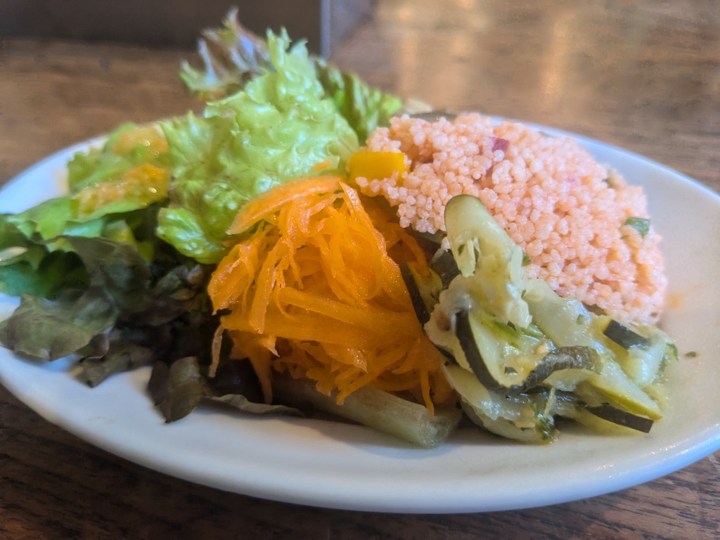 某パン屋でキッシュが売ってると買いがちです。というわけでキッシュを食べました。ズッキーニ、ポテト、パルミジャーノ、タイムのキッシュです。よくわからんが美味かった。ズッキーニの冷製ポタージュも美味かった。なかなかおしゃれなお店で店内で男は私だけでした。