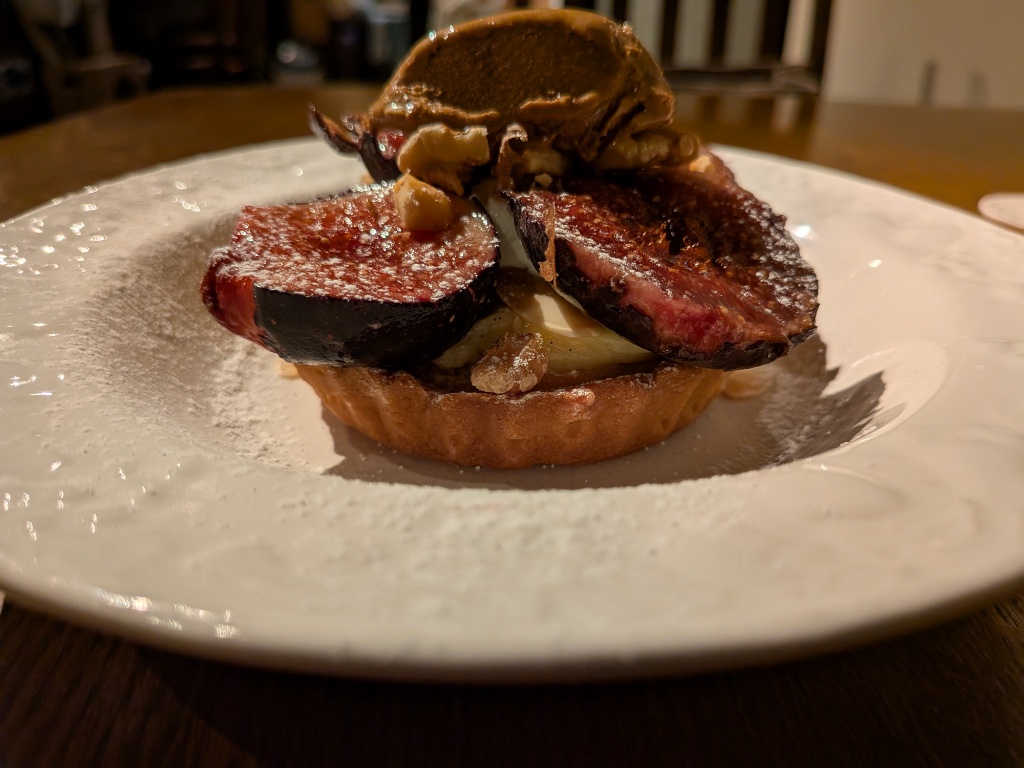 毎度おなじみメゾン・ド・ハラです。ブログサボりすぎて1ヶ月前に食ったやつなので一気に書く! 前菜はブリアサヴァランと横浜産いちじくのサラダ添えです。ブリアサヴァラン初体験です。ここのメニューに知らない名前があると注文しがちです。間違いなくチーズではあるんだけどスイーツと言われても納得するような味わいでおもしろい。ほんのり甘いんだよね。チーズの塩気はあるんだけどふわっと甘い。こりゃうまい。ここにいちじくを加えるともはや完全にスイーツ。おもろいわー。まだまだ知らないことばかりだ。主菜は北海道産サンマのポワレです。旬ですからね。サンマくらいどこでも食えるだろと言うなかれ。なじみ深い食材をどう調理するのか楽しみなのがここのお店なので。大ぶりのサンマは表面は香ばしく中はふっくら肉厚でじっくり丁寧にポワレされていると思われるため小骨は気にせず食べられるほどです。塩焼きや煮付けはもちろんうまいけど素材を生かした調理方法としてポワレは一押しです。ただし家庭でやるのはかなり手間がかかるので素直にお店で食べましょう。デザートはプリンと黒いちじくのタルトです。2個食いです。プリンがあれば食う! 旬を逃すとお目にかかれないいちじくも食う! 神様は何も禁止なんかしてない!(by 川本真琴)プリンは固めに見えてかなりクリーミーなタイプでしっかり甘くて脳が溶ける。うまいなあ。そして黒いちじくのタルトは前菜のいちじくと比べて味が濃い。そもそもいちじくはわりとぼんやりした味ですがはっきりわかるくらい濃厚な味わいでした。こういうものを惜しげもなく使ってくれるのが楽しいですね。